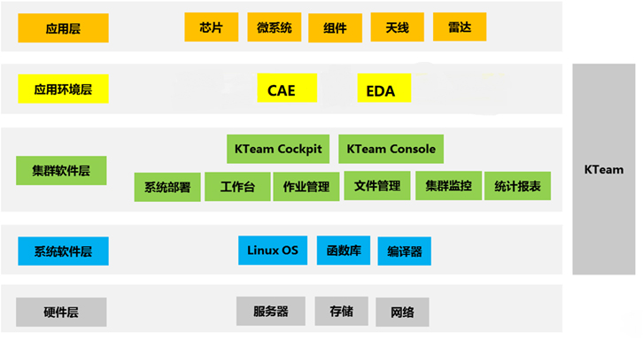 KTeam是基爾科技自主研發(fā)的高性能協(xié)同設(shè)計仿真軟件平臺,可實現(xiàn)設(shè)計與計算集群資源統(tǒng)一部署、使用、瀏覽、管理、監(jiān)控和統(tǒng)計等,可大幅提高仿真效率,簡化平臺管理。KTeam由應用工作臺、作業(yè)調(diào)度模塊、文件管理模塊、集群監(jiān)控模塊、資源統(tǒng)計模塊組成。選用KTeam及其相關(guān)服務,可以幫助用戶部署操作系統(tǒng),安裝和測試集群軟件以及應用環(huán)境,基于高性能集群硬件設(shè)備,提供傳統(tǒng)的設(shè)計環(huán)境和高速的仿真體驗。